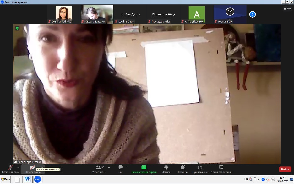 31 березня 2023 року здобувачка третього (освітньо-наукового) рівня вищої освіти ОНП «Філософія» Елеонора Бутенко в рамках проходження науково-педагогічної практики провела відкритий виховний захід та майстер-клас «Розвиток творчої особистості методом арт-терапії: філософія мистецтва».