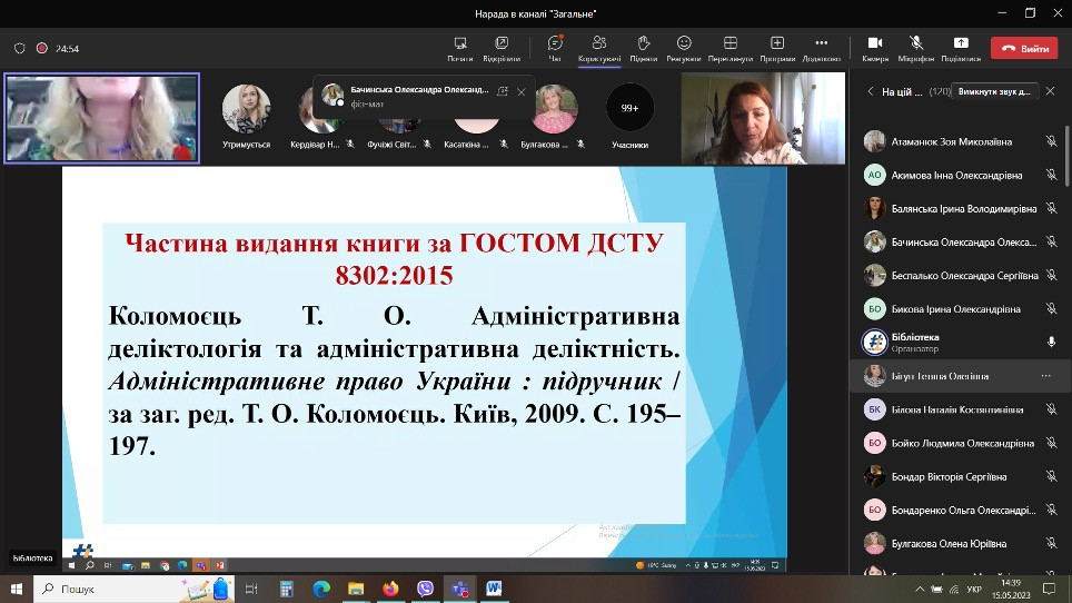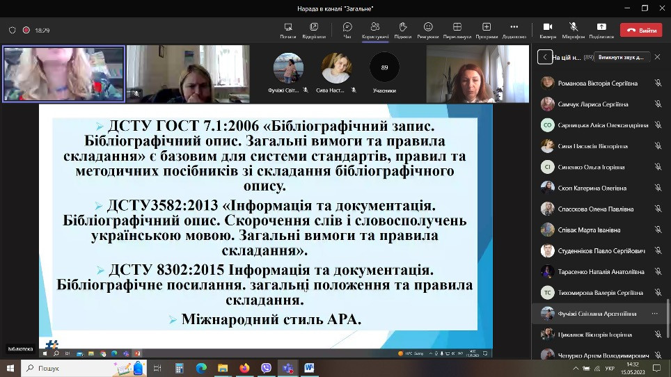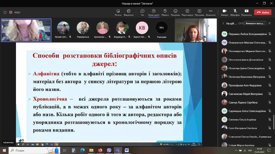 В рамках проведення Днів науки в Університеті Ушинського 15 травня 2023 року силами бібліотеки було проведено онлайн-лекцію «Вимоги до оформлення списку використаних джерел у наукових роботах».
