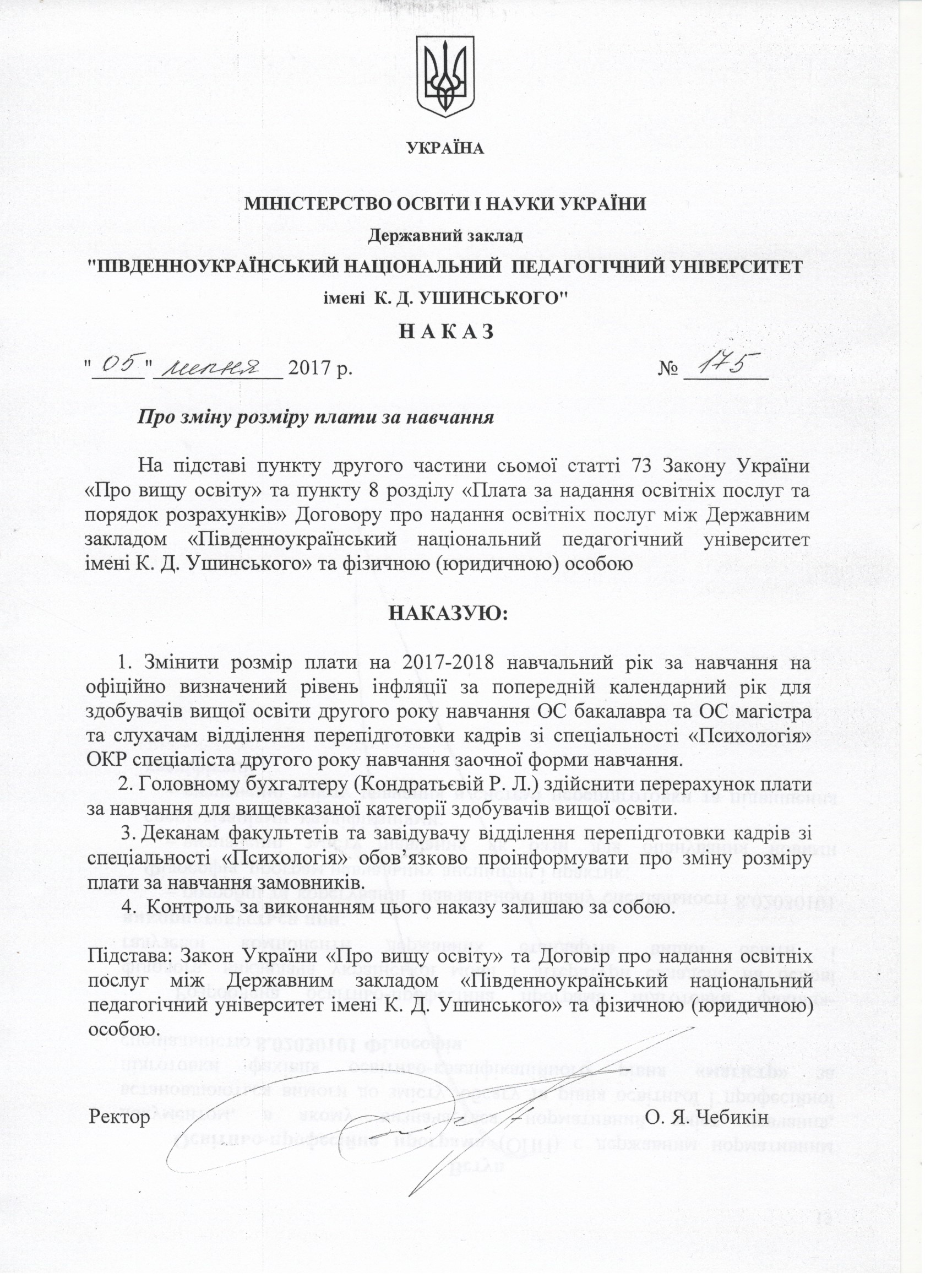 Наказ про зміну плати за навчання