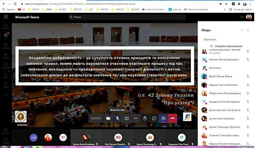On November 8, 2021, as part of the study of the discipline "Introduction to the specialty" (Professor Oksana Petinova), employees of the library of Ushynsky University were invited to classes and conducted a virtual tour and learned about the features of working with library funds in distance learning.