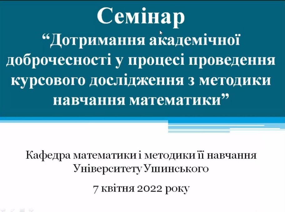 On April 7, 2022, the Department of Mathematics and Methods of Teaching at Ushinsky University within the week of academic integrity held a seminar "Observance of academic integrity in the process of conducting a course study on methods of teaching mathematics."