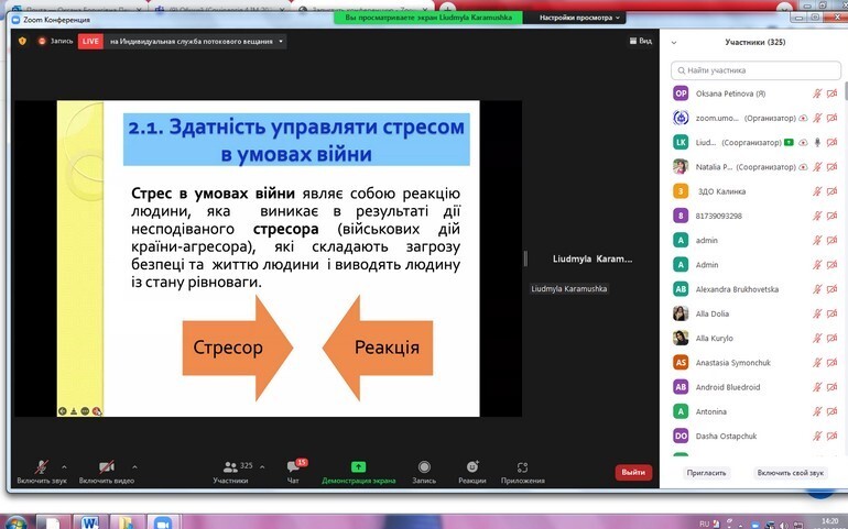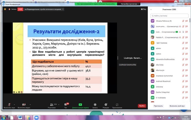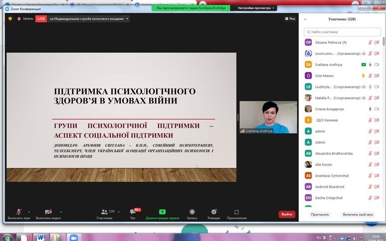 On April 13, 2022, research and teaching staff and postgraduate students of the Department of Philosophy, Sociology and Management of Socio-Cultural Activities took part in the international webinar "Psychological support of the individual in war" (Ukraine - Poland).