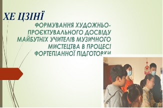 Хе Цзінї (науковий керівник – доктор педагогічних наук, професор, завідувачка кафедри музичного мистецтва і хореографії О.Є. Реброва) на тему: «Формування художньо-проєктувального досвіду майбутніх учителів музичного мистецтва в процесі фортепіанної підготовки»