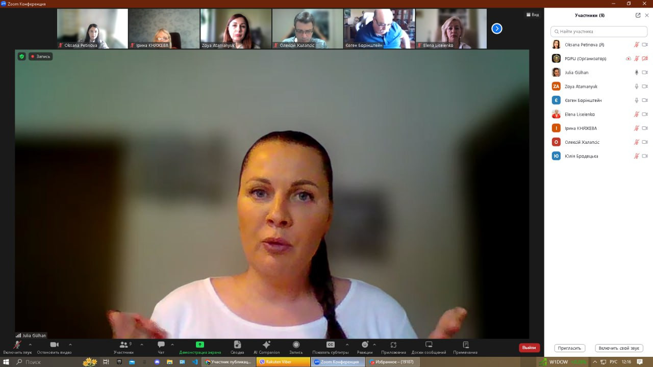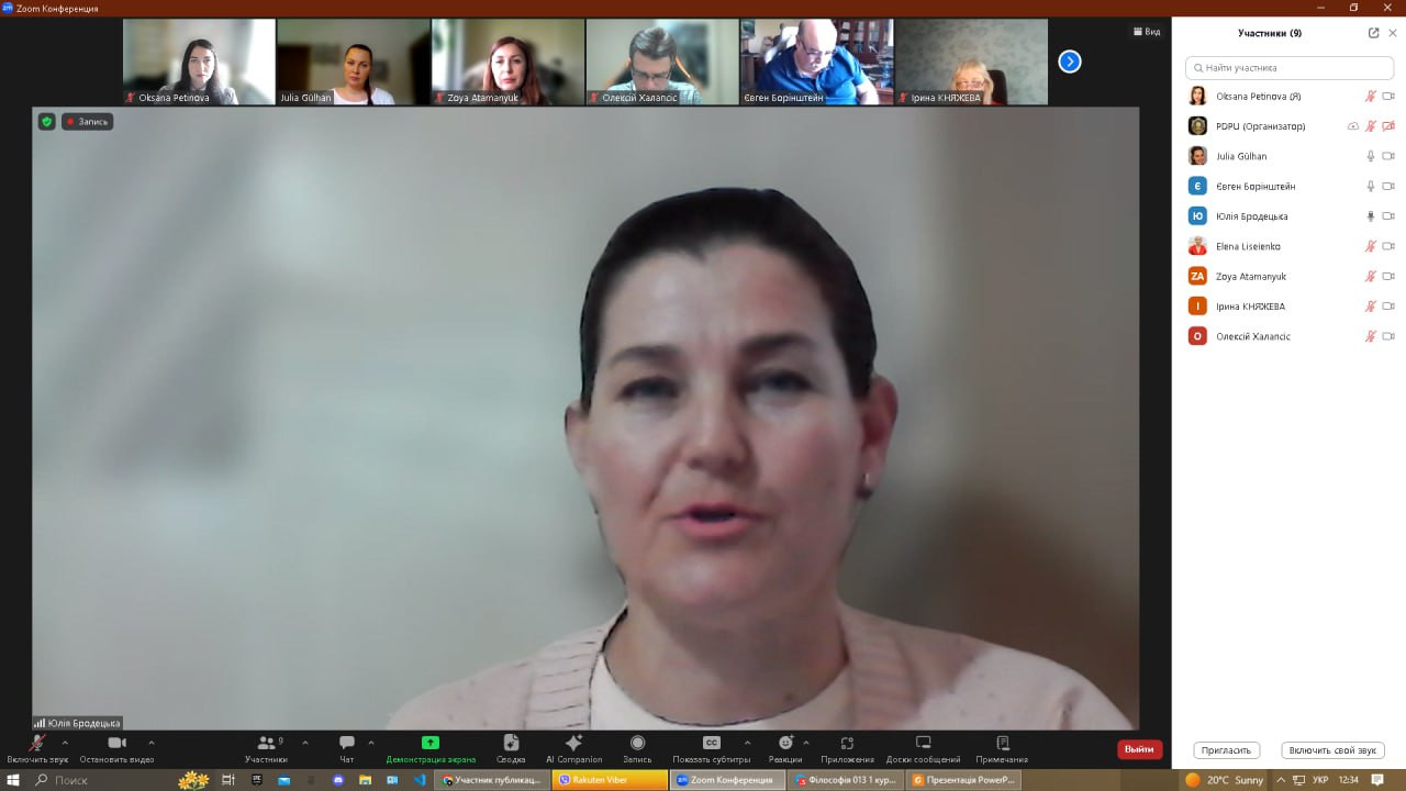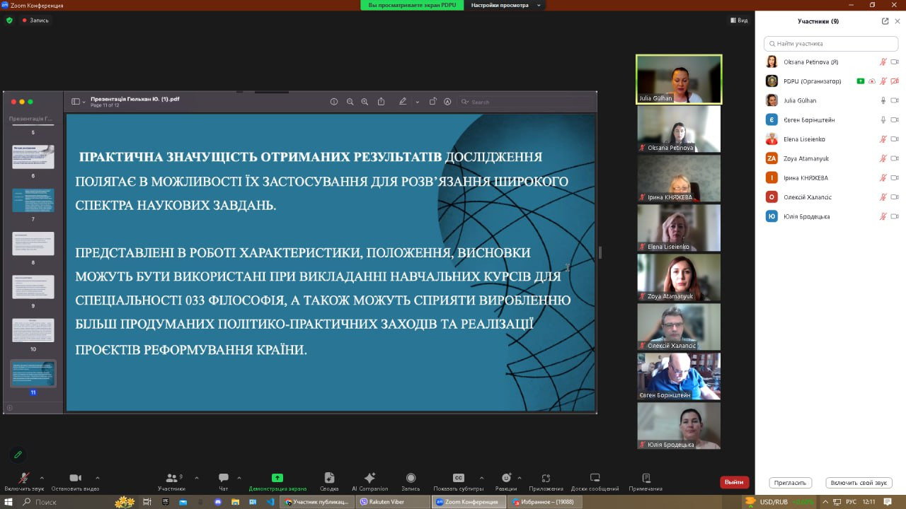 Вітаємо аспірантку Юлію Гюльхан та її наукового керівника проф. Олену Лісеєнко з успішним захистом дисертації на здобуття наукового ступеня доктора філософії зі спеціальності 033 «Філософія» на тему «Витоки та еволюційні трансформації української ментальності». Голова ради – проф. Євген Борінштейн, рецензенти: проф. Оксана Петінова та доц. Зоя Атаманюк; опоненти: проф. Олексій Халапсис (Дніпровський державний університет внутрішніх справ), проф. Юлія Бродецька (Дніпровський національний університет імені Олеся Гончара). Дисертаційна робота присвячена філософському дослідженню витоків формування та еволюційних трансформацій української ментальності, що зумовлена необхідністю осмислення духовності народу та соціокультурних процесів, які відбуваються в сучасному українському суспільстві, функціональних взаємозв’язків соціального та етнокультурного рівнів. Представлені в роботі характеристики, положення, висновки сприятимуть виробленню більш продуманих політико-заходів та реалізації проєктів реформування країни. Продуктивна дискусія та творчий діалог стали квінтесенцією сьогоднішнього наукового заходу!