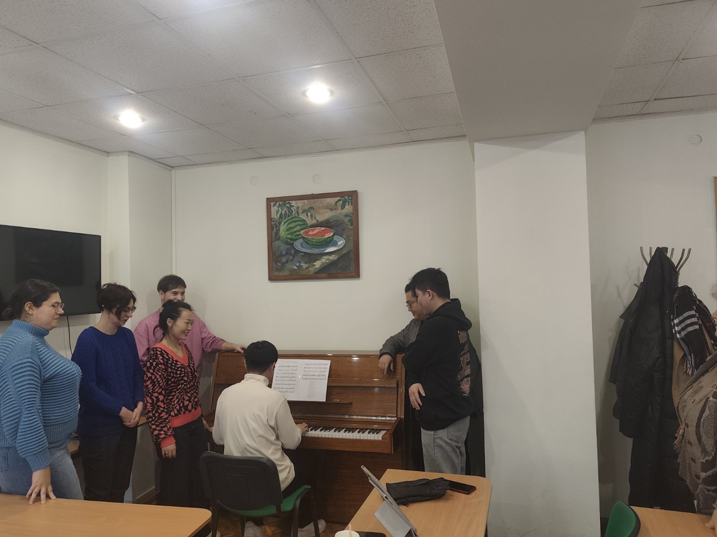 Нарешті в приміщення лабораторії «Інновації мистецької освіти» перевезено фортепіано. Це одразу активізувало дослідницьку діяльність аспірантів. Першими застосували можливість провести заходи діагностико-методичного характеру аспіранти-вокалісти: Сунь Кеао, Янь Пен, Лю Чжиго, Бянь Наньнаь, Чжан Венлі. Українськи здобувачі А.Семенісова, Вікторія Мартинюк, Олег Чепканич із зацікавленням поставилися до експерименту і працювали з китайськими аспірантами.