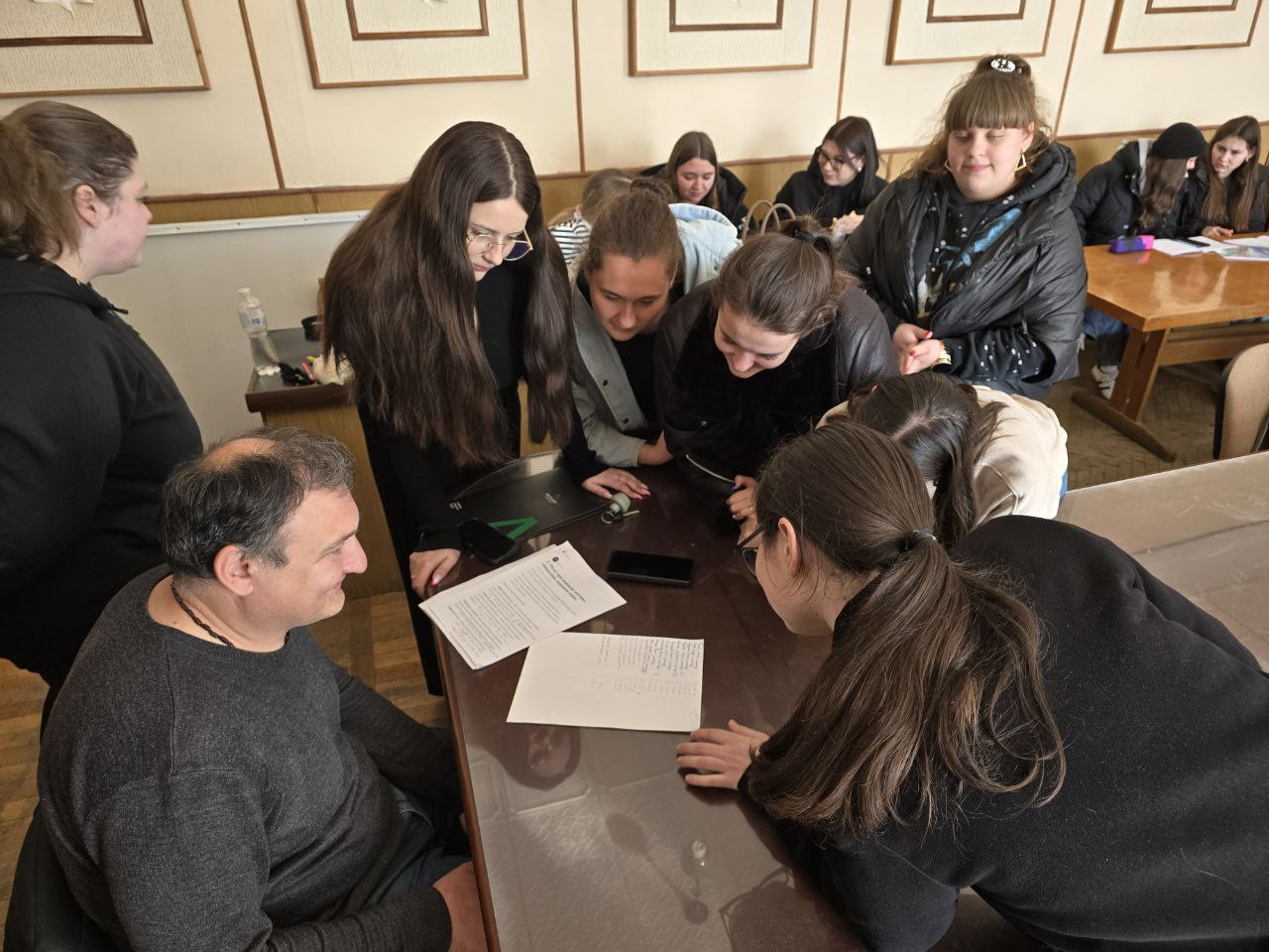 Здобувачі третього (освітньо-наукового) рівня вищої освіти 2-го року навчання спеціальності 033 «Філософія» завершили проходження науково-педагогічної практики, передбаченої освітньою складовою програми підготовки докторів філософії у розмірі 3 кредитів ЄКТС, яка тривала з 24 березня по 11 квітня 2025 р. Індивідуальний план проходження практики включав навчальну, методичну, науково-дослідну та організаційно-виховну роботу як основні види діяльності науково-педагогічних працівників ЗВО. Практиканти знайомились з нормативними документами, метою, завданнями, змістом, структурою і особливостями організації освітнього процесу у педагогічному середовищі, зокрема на кафедрі. Значна увага була приділена вивченню і аналізу педагогічного досвіду викладачів кафедри та проведенню навчальних занять. Особливі акценти зроблено на відкритих лекціях, практичних, виховних заходах, що були проведені на різних факультетах. Наприклад, Сергій Карастан «Історія філософської думки Стародавнього Сходу» (1 курс, факультет іноземних мов; ОК «Філософія»); Ігор Усатюк та Степан Барков працювали зі студентами факультету початкового навчання, розглядали теми «Основні форми мислення: поняття», «Основні форми мислення: судження» (2 курс, ВК «Логіка»). Серед найбільш цікавих виховних заходів слід відзначити вікторину «Сторінками історії України» та «Українська пісня – душа нашого народу» (Ігор Усатюк), факультет початкового навчання. Аспіранти відвідували засідання студентських наукових гуртків кафедри, наприклад, Олександр Крохмаль, Олег Кубаш, Олександр Гондельберг взяли участь у засіданні гуртка «Південноукраїнські наукові студії». Всі практиканти працювали в лабораторії «Інновацій соціокультурних досліджень», виконували індивідуальні науково-дослідницькі завдання. Завершенням блоку науково-дослідницької роботи був виступ на науково-методологічному семінарі кафедри за темою власного наукового дослідження та підготовка тез доповіді на кафедральну Інтернет-конференцію здобувачів вищої освіти і молодих учених «Освіта та соціалізація особистості», яка відбудеться 24-25 квітня 2025 року. Сергій Карастан та Ігор Усатюк взяли участь у Міжнародному науково-практичному форумі «Відновлення України: Міжгалузевий теоретико-прикладний аналіз та потенціали розвитку» (МГУ, ЗВО-партнер). Всі долучалися також до різних заходів, як-от, гостьова лекція «Цифровий добробут — елемент сучасної культури» (доц. Ольга Нестерова, НТУ «Дніпровська політехніка», ЗВО-партнер); комунікативні зустрічі Частини І «The democratic context of research and higher education in Europe» Eurodoc Ambassador Programme for Values and Democracy in European Research and Higher Education (ValDem); вебінар «Українська мова в житті, роботі й проєктах: практичні поради для дорослих» (Rozmova Space та ВГО «Сила країни»), круглий стіл з фахівцями Головного управління статистики (ГУС) в Одеській області. Результати практики заслухано та обговорено на звітній конференції у формі захисту аспірантами звітів практики, що відображено у протоколі засідання кафедри.