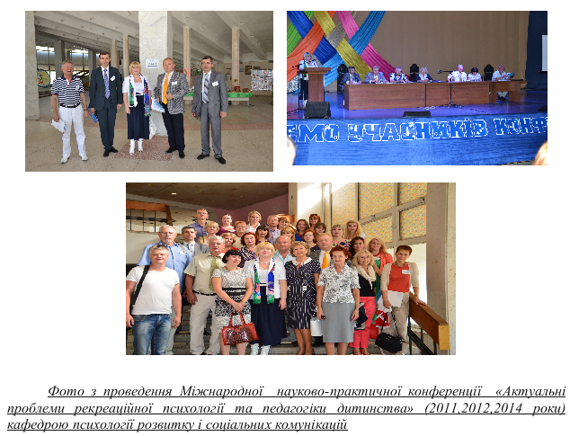 Також, традиційним стало проведення Міжнародної науково-практичної конференції «Актуальні проблеми рекреаційної психології та педагогіки дитинства», яка в 2014 році була проведена втретє. В роботі конференції приймали участь представники таких закладів, як Київський національний університет імені Т.Г. Шевченка (Україна, м. Київ), ДЗ «Науково-практичний медичний реабілітаційно-діагностичний центр МОЗ України» (Україна, м. Київ), Національний педагогічний університет імені М.П. Драгоманова (Україна, м. Київ), Інститут психології імені Г.С. Костюка