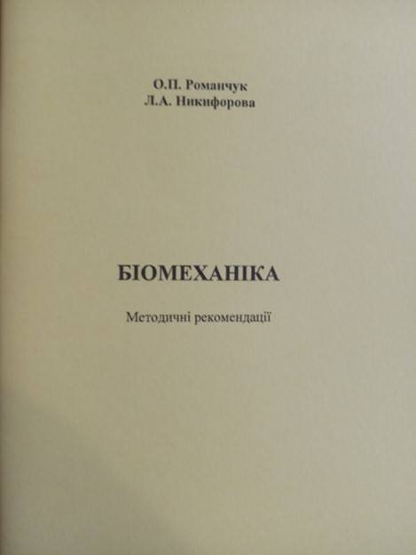 3. Біомеханика метод. рек. / О. П. Романчук, Л. А. Никифорова – Одеса : видавець Букаєв Вадим Вікторович, 2009. – 66 с.