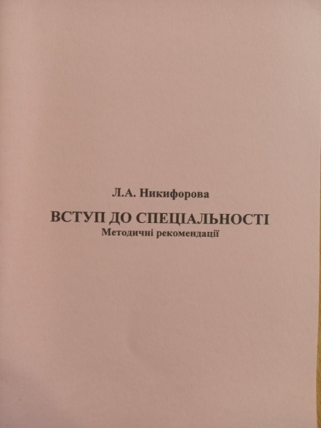 5. Вступ до спеціальності : метод. рек. / Л. А.Никифорова – Одеса : видавець Букаєв Вадим Вікторович, 2009. –44 с.