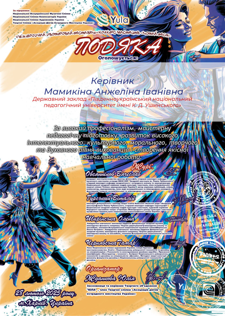 We sincerely congratulate our talented students and their mentors on their brilliant victories at international festivals-competitions! We wish you inexhaustible inspiration, creative enthusiasm and further professional growth!
