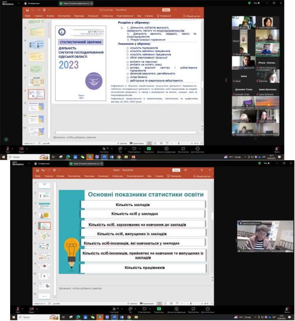 On Wednesday, April 3, 2025, the higher education students and teachers of Ushynsky University took part in the round table "THE ROLE OF STATISTICAL INFORMATION IN THE MODERN INFORMATION SOCIETY. STATISTICAL DATA - THE BASIS FOR SCIENTIFIC RESEARCH", which is being held for the second time within the framework of the implementation of the cooperation agreement between the Main Department of Statistics in Odesa region and Ushynsky University.