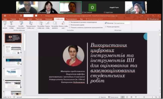 This year, at the plenary session of the conference, the university presented a report by Assoc. Prof. Kateryna NEDIALKOVA “Use of digital tools and AI tools for evaluating and peer-reviewing student work”, which is the result of work in one of the areas of research