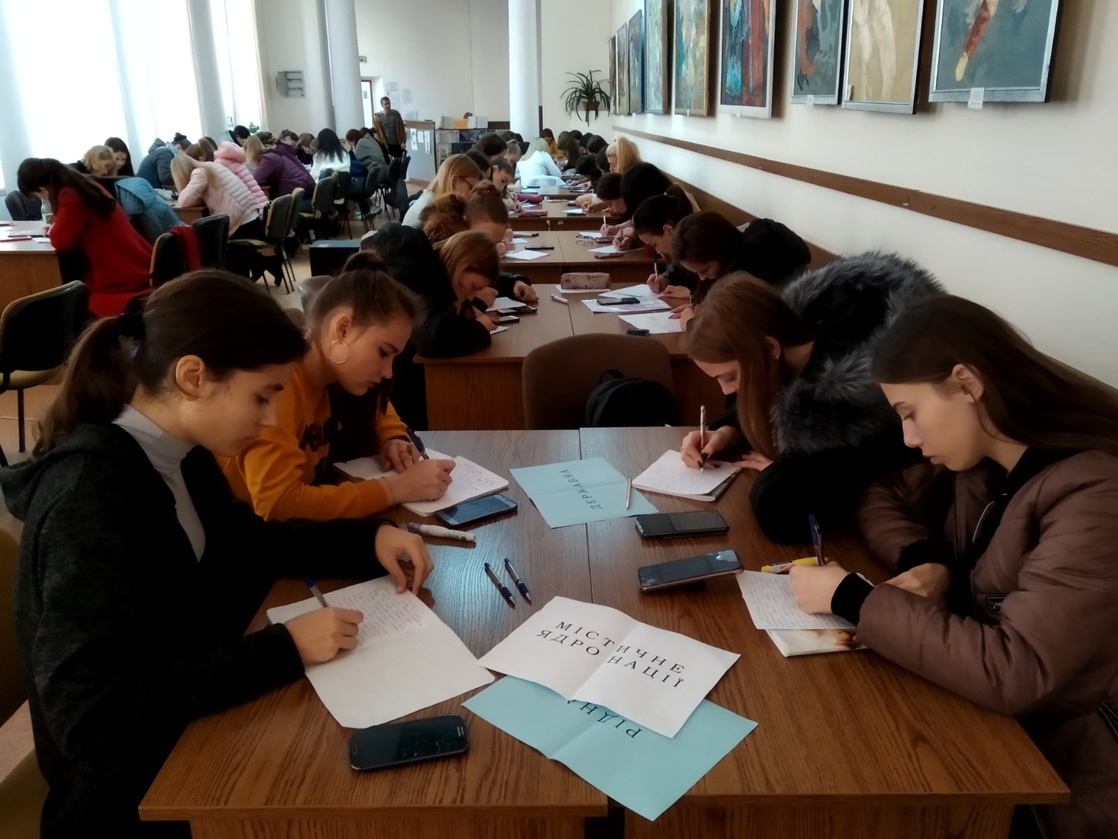 On November 8, 2019, to the Day of Ukrainian Writing and Language, the library of South Ukrainian National Pedagogical University named after K.D. Ushynsky organized the location for writing the 19th All-Ukrainian Radio Dictation of National Unity in the reading room. The event has been attended by students and teachers of the Faculties of Primary Education, Pre-school Pedagogy and Psychology, and the Faculty of Philology.