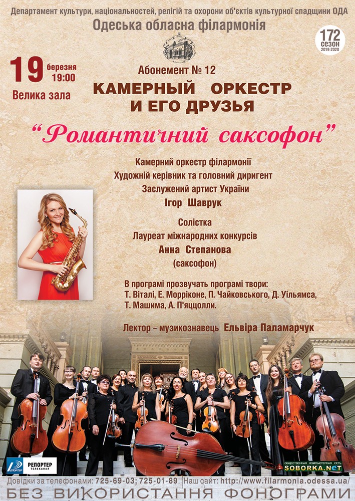 The next concert of Hanna Stepanova will be held on March 19 at Odesa Philharmonic with the participation of the Chamber Orchestra under the direction of Igor Shavruk.