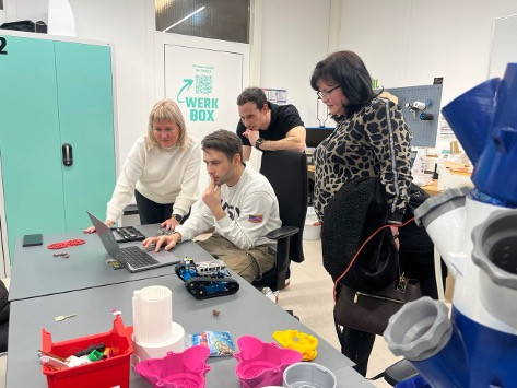 An introduction to the research activities of the Weingarten Pedagogical University (Center for Research Services, CoLiLab) was held. Makerspace, Montessori Studio, Schlossbau).