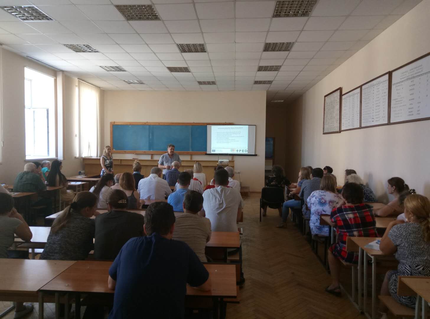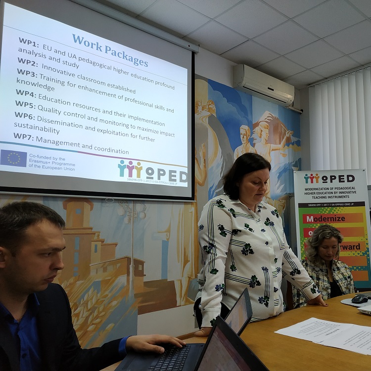03 вересня 2018 року на зборах співробітників фізико-математичного факультету Південноукраїнського національного педагогічного університету імені К. Д. Ушинського було презентовано результати виконання окремих завдань проекту МоПЕД, що фінансується ЕРАЗМУС+К2. Із відповідною інформацією на зборах виступили науковий керівник проекту - доктор педагогічних наук, професор Ордановська Олександра Ігорівна, а також менеджер проекту від Університету Ушинського - доктор фізико-математичних наук, професор Гохман Олександр Рафаїлович.