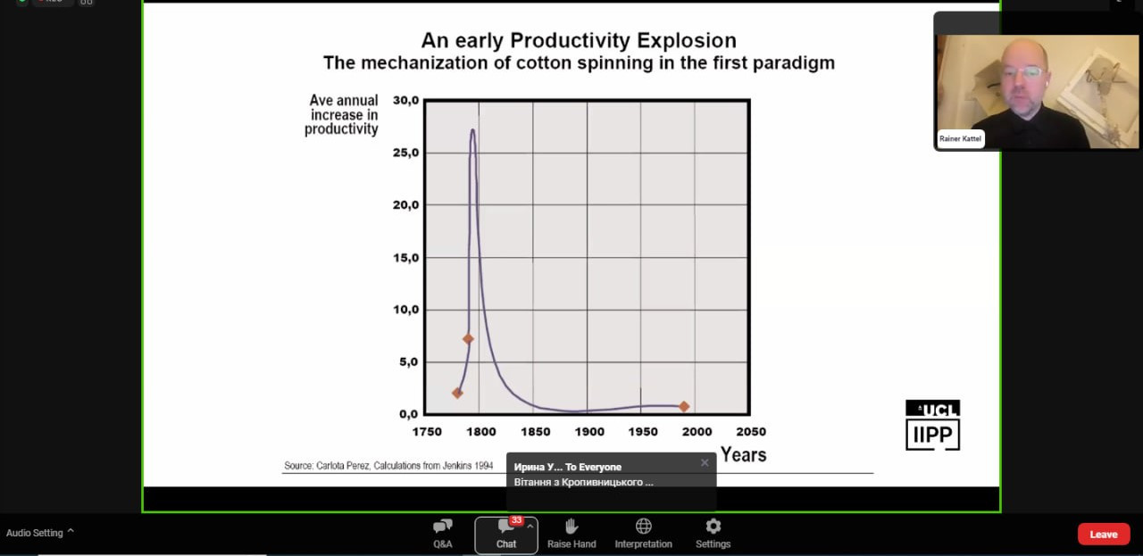 Студенти ОПП «Менеджмент соціокультурної діяльності» та аспіранти ОНП «Філософія» мали змогу взяти участь в обговоренні актуальної теми, яку висвітлив професор, заступник директора Інституту інновацій та суспільного призначення (IIPP) Університетського коледжу Лондона (UCL) Райнер Каттел.