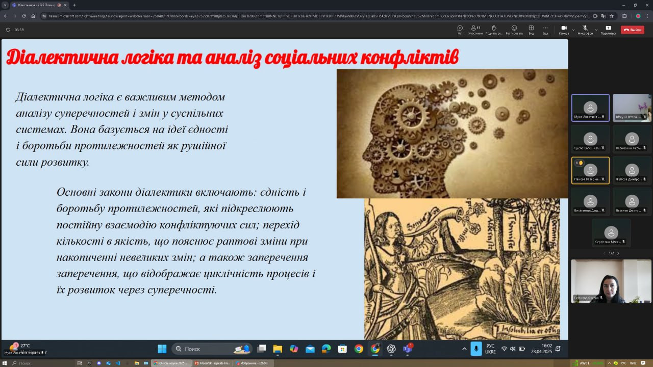 Кафедра активно підтримує та реалізує договори про співпрацю із ЗВО-партнерами. 23 квітня 2025 року молоді вчені – здобувачі вищої освіти різних рівнів представили наш університет на ХV Міжнародній науково-практичній конференції студентів, аспірантів та молодих учених «Юність науки – 2025», яка відбулася в Національному університеті «Чернігівська політехніка».Гарант ОНП «Філософія» проф. Оксана Петінова виступила на відкритті гуманітарної секції з вітальним словом, а також разом із доц. Ольгою Нестеровою (НТУ «Дніпровська політехніка, ЗВО-партнер») презентували доповідь на тему «Філософські аспекти критичної педагогіки Пауло Фрейре в контексті академічної доброчесності здобувачів освіти». Аспіранти ОНП «Філософія» підготували наукові розвідки відповідно до тем своїх дисертаційних досліджень (Віолета Світлицька, Сергій Карастан, Ігор Усатюк). Вітаємо з успішними виступами студентів факультету початкового навчання, членів студентського наукового гуртка «Південноукраїнські наукові студії» (керівник – проф. Оксана Петінова):