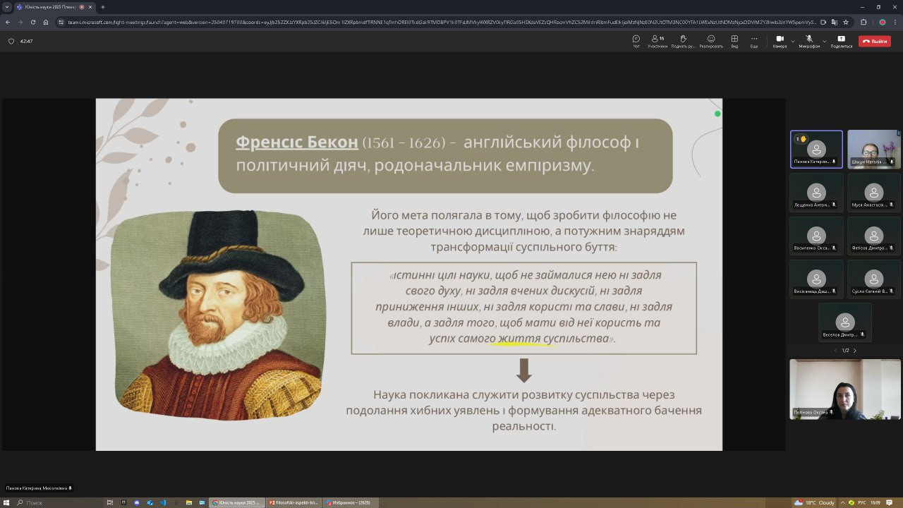 ✨ Катерину Панову, 2 курс («Індуктивна логіка Бекона у філософському аналізі соціальних процесів»);