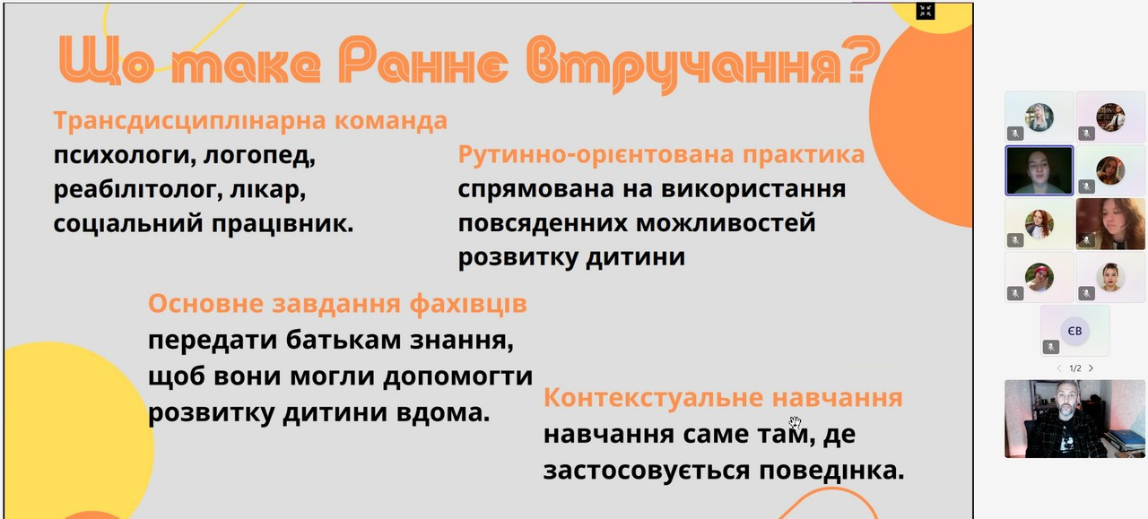 Тема зустрічі: «Що таке раннє втручання? Роль психолога в трансдисциплінарній команді»
