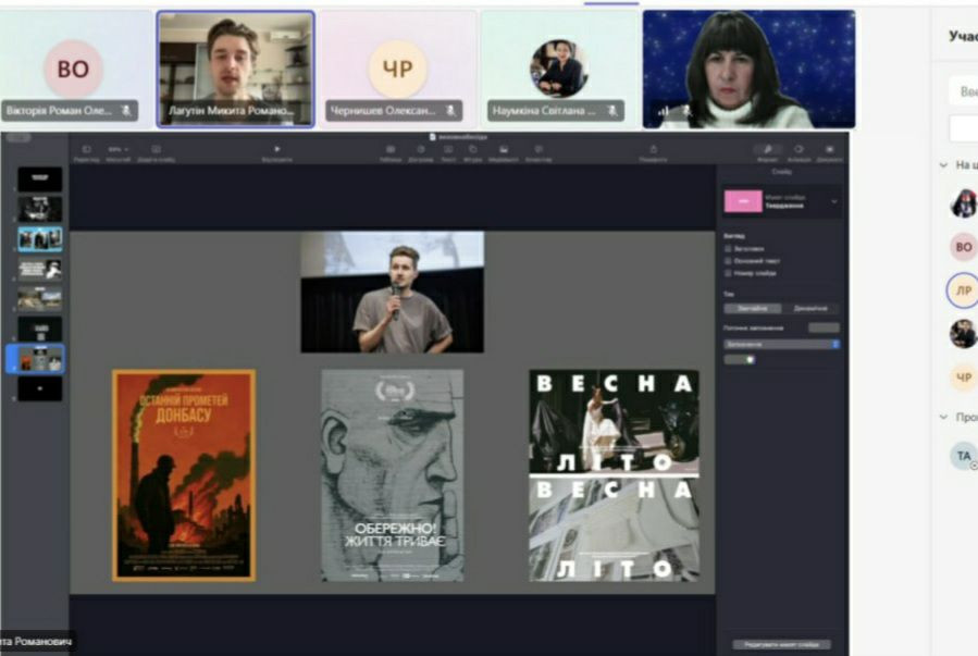 Вдумливо поговорили про делікатне мистецтво інтерв’ю в документальних стрічках. Викладачі і студенти розповіли власні історії підтримки наших захисників. На завершення бесіди поділилися психологічними прийомами адаптивного збереження психологічної стійкості та здатності розвиватися.