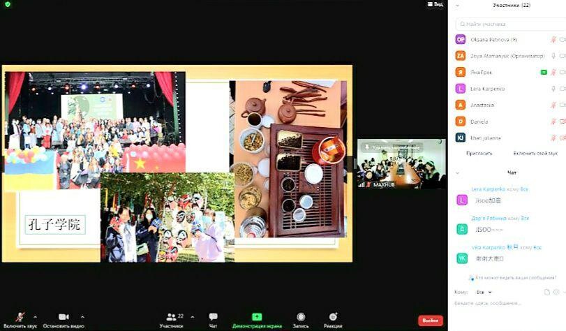 Під час заняття студенти мали змогу обмінятися думками та актуальною інформацію про розвиток сучасної філософії, презентувати власні розробки щодо сенсу життя та цінностей; поділилися особистими враженнями про студентське життя та навчання у ЗВО України та Китаю; поспілкувалися англійською та китайською мовами.