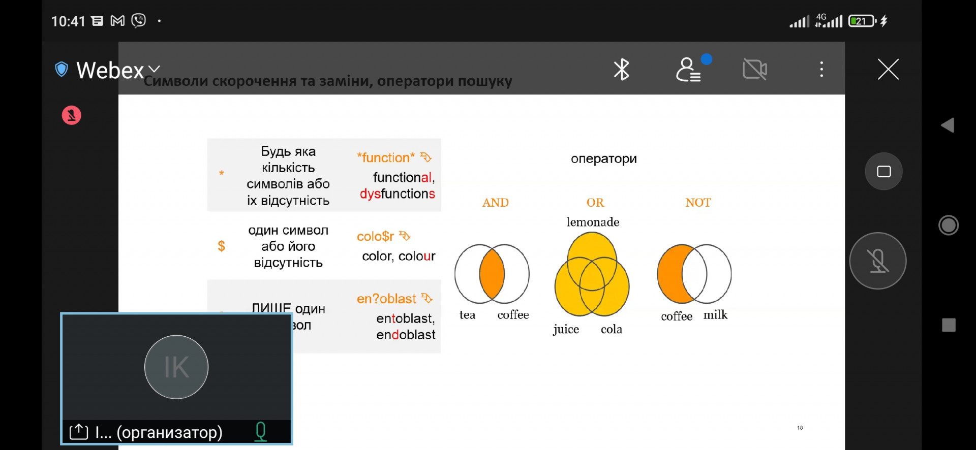 Основні проблеми, як розглядалися: Де знайти ключову літературу за своєю темою? Де знайти партнера або рецензента? Які установи та науковці є лідерами за даним напрямом? Як з ними зв’язатися? Які видання спеціалізуються на даній темі? Які установи фінансували такі дослідження? Як знайти відповіді на ці питання за допомогою базового пошуку з використанням операторів пошуку та символів скорочення. Як виділити найцитованіші роботи останніх років? Як зберегти та поділитися з колегами найцікавішими даними? Як проаналізувати вибірку документів? Вебінар був змістовним та актуальним.