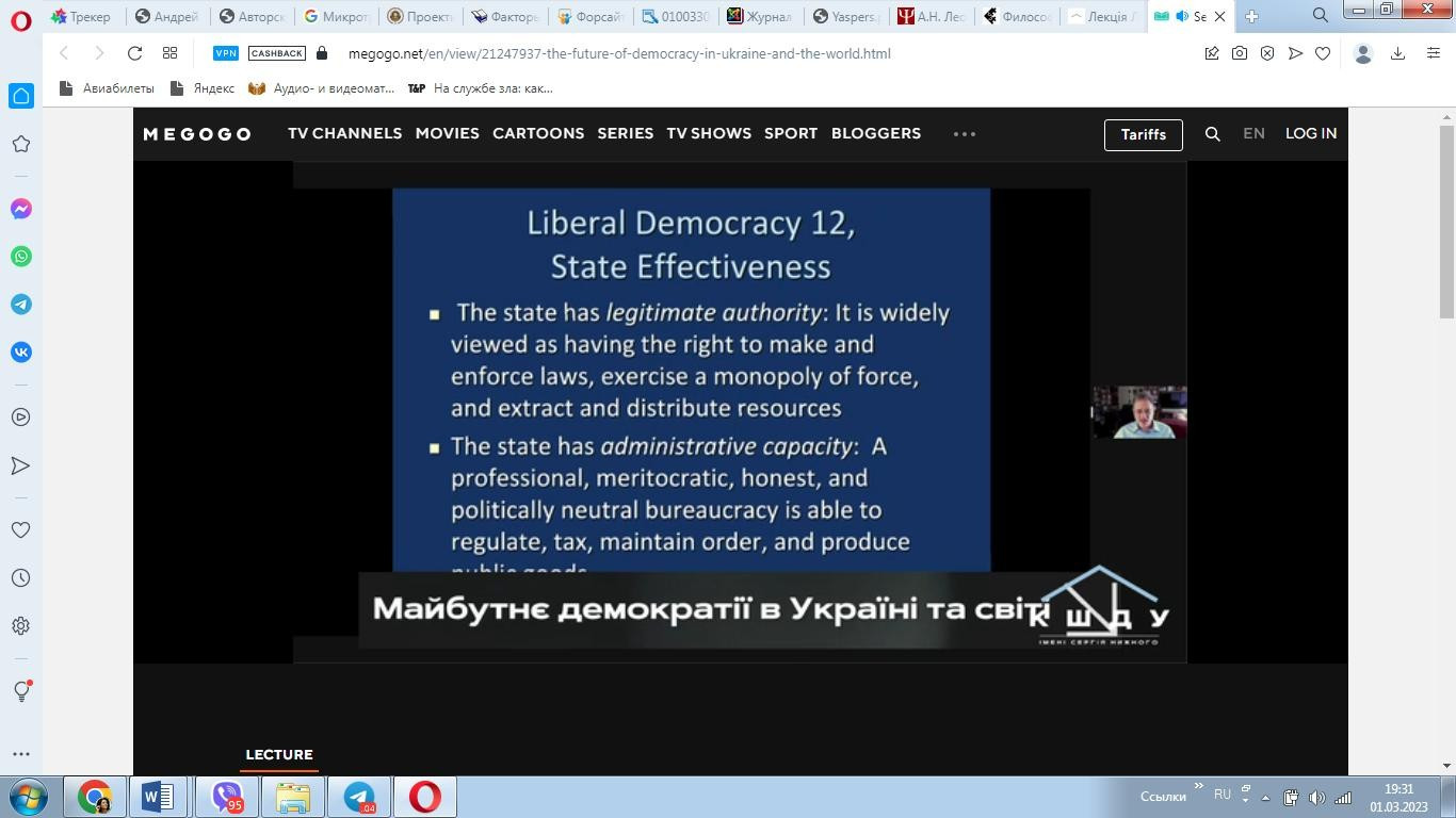 1 березня 2023 року науково-педагогічні працівники кафедри філософії, соціології та менеджменту соціокультурної діяльності та здобувачі третього (освітньо-наукового) рівня вищої освіти (Віолета Світлицька, Ігор Семенов, Інна Федорова, Людмила Городнюк та інші) й гарант ОНП Філософія (проф. Оксана Петінова) долучилися до перегляду відкритої онлайн трансляції лекції Ларрі Даймонда на тему «Майбутнє демократії в Україні та світі», що була проведена в Київській Школі Державного Управління імені Сергія Нижного для здобувачів та співробітників, а також всіх бажаючих. Ларрі Даймонд – визнаний професіонал, всесвітньо відомий фахівець, професор соціології та політичних наук Стенфордського університету, де він викладає курси з демократії, демократичного розвитку та американської зовнішньої політики. Обіймав посади радника багатьох урядових та міжнародних організацій, включаючи державний апарат США, ООН, Світовий банк та Агенство США з міжнародного розвитку. В рамках заходу розглядалися питання розуміння цінностей та принципів сучасної демократії, проаналізовано ключові виклики та сучасної демократії та тренди демократизації, пошук адекватних відповідей на них. Значну увагу було приділено питанню євроінтеграції, демократичних процесів в Україні в рамках війни з росією, окресленню перспектив майбутнього демократії в Україні та світі.