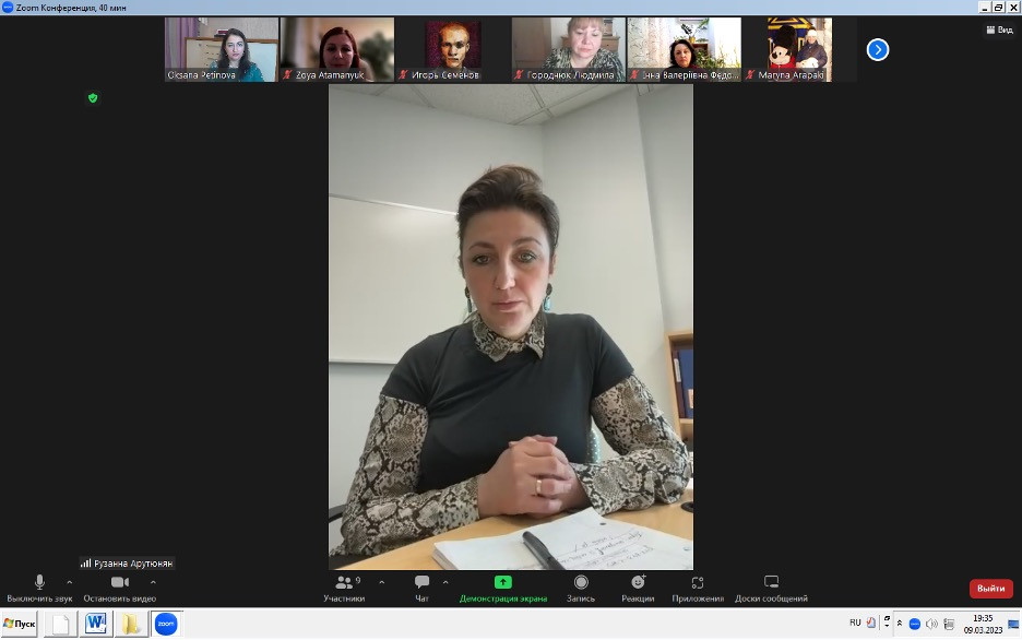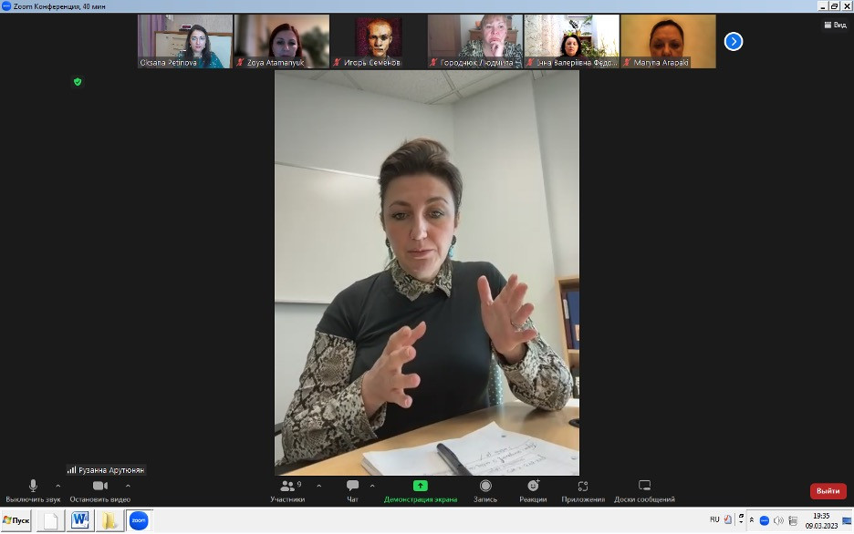 19 березня 2023 року здобувачі третього (освітньо-наукового) рівня вищої освіти ОНП Філософія (Віолета Світлицька, Юлія Міхальова, Інна Федорова, Марина Арапакі, Віолета Світлицька, Людмила Городнюк, Ігор Семенов, Лариса Васильєва), гарант ОНП проф. Оксана Петінова та член групи забезпечення ОНП доц. Зоя Атаманюк взяли участь у міжконтинентальному науково-меодичному семінарі. Спікер – PhD, SAIT (Calgary, Canada), CEO WAVE Digital marketing Рузанна Арутюнян.Питання, винесені на обговорення:  сучасні методи та форми організації освітнього процесу у закладах вищої освіти Канади, інноваційні інструменти навчання та викладання; особливості наповнення та ведення профілю в Linkedin у професійній діяльності викладача, статус науковця та особливості професії науковця, «soft skills» у міжкультурній міжконтинентальній комунікації.