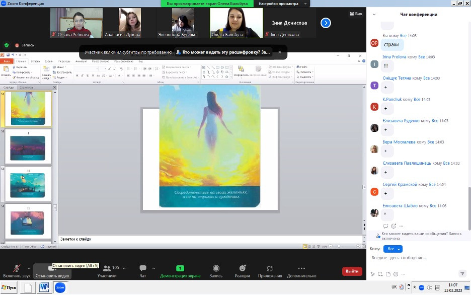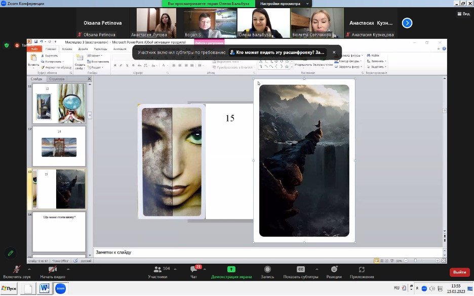 15 березня 2023 року на запрошення докт. філос. н., доц., завідувачки кафедри загальнонаукових соціальних та поведінкових дисциплін Алли Нерубаської, випускниці спеціалізованої ученої ради Д 41.053.02 із захисту дисертацій на здобуття наукового ступеня доктора (кандидата) філософських наук за спеціальністю – 09.00.03 – «Соціальна філософія та філософія історії» Університету Ушинського здобувачі третього (освітньо-наукового) рівня вищої освіти ОНП Філософія (Віолета Світлицька, Елеонора Бутенко, Інна Федорова, Людмила Городнюк, Олена Парадюк, Іванна Ніколаєва та інші) і гарант ОНП «Філософія» Оксана Петінова взяли участь у Всеукраїнській лекції-тренінгу на тему: «Психологія в мистецтві та мистецтво в психології – частина 3: адаптація до складних умов життя та праці», присвяченому 25-річчю Одеського інституту ПрАТ «ВНЗ «МАУП»».