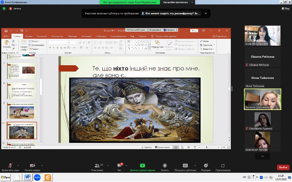 15 березня 2023 року на запрошення докт. філос. н., доц., завідувачки кафедри загальнонаукових соціальних та поведінкових дисциплін Алли Нерубаської