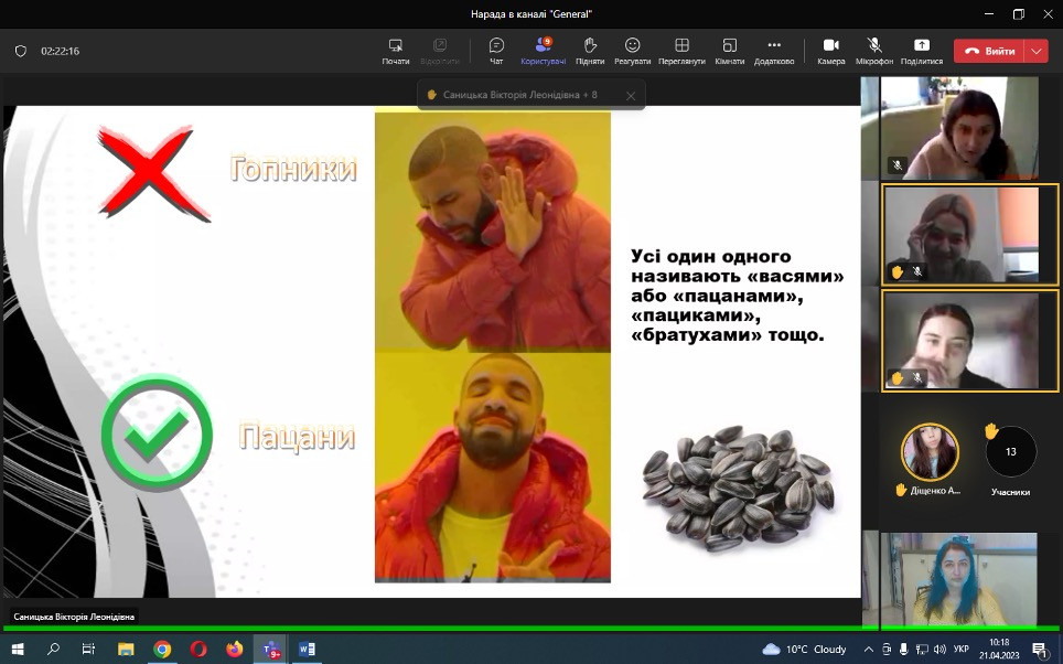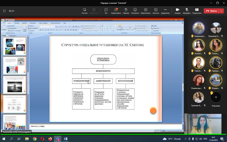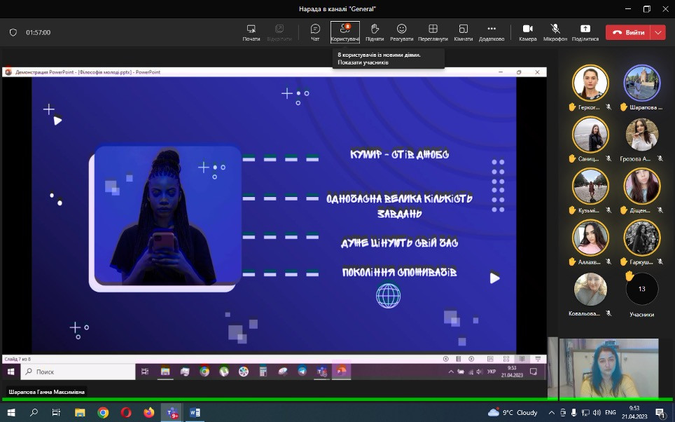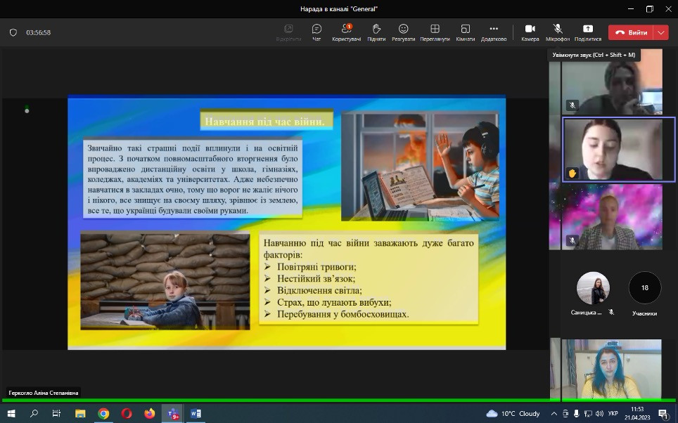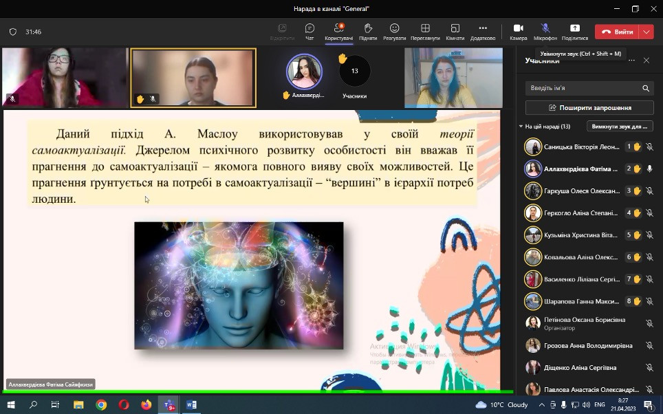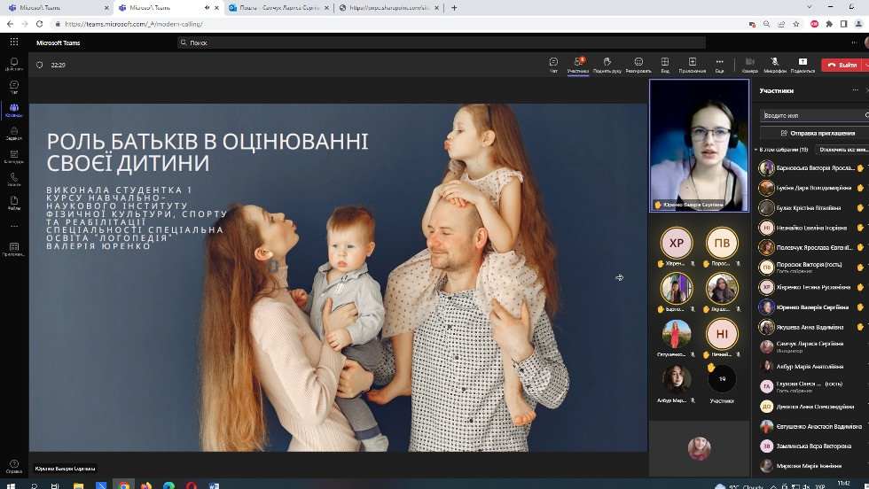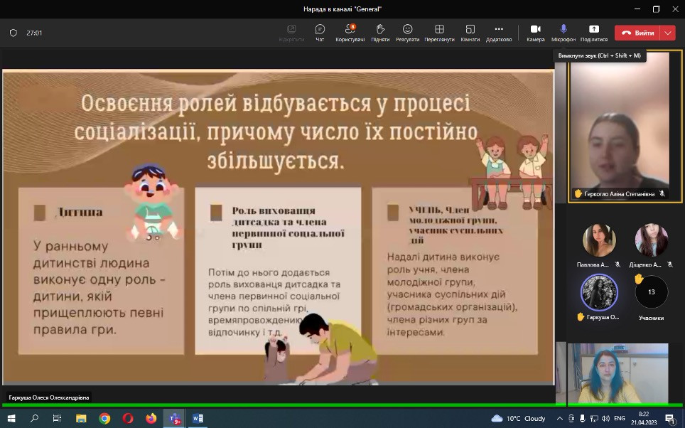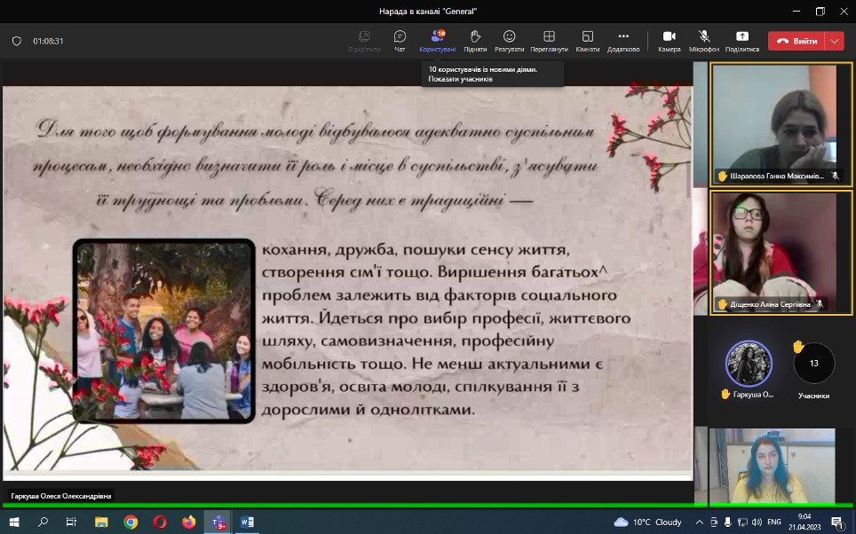 Проф. Борінштейн керував секцією «Стан та проблеми реформування системи української освіти»; Доц. Атаманюк З. М. проводила секцію змішаної форми з онлайн включеннями технічними засобами кафедри філософії, соціології та менеджменту соціокультурної діяльності «Соціальна адаптація особистості в умовах суспільних трансформацій». Виступили доц. Атаманюк З. М., доц. Поплавська Т.М., асп. Парадюк О., здобувачі освіти спеціальності 024 Хореографія. До роботи конференції долучилася викладач Самчук Л. С. зі здобувачами освіти. Проф. Петінова О. Б. та доц. Врайт Г. Я. – активно обговорювали на засіданні секції питання ролі молоді в освітньому просторі, механізми соціалізації та самореалізації. У конференції взяли активну участь здобувачі освіти соціально-гуманітарного факультету, музичної та хореографічної освіти, початкового навчання, інституту фізичної культури, спорту та реабілітації.