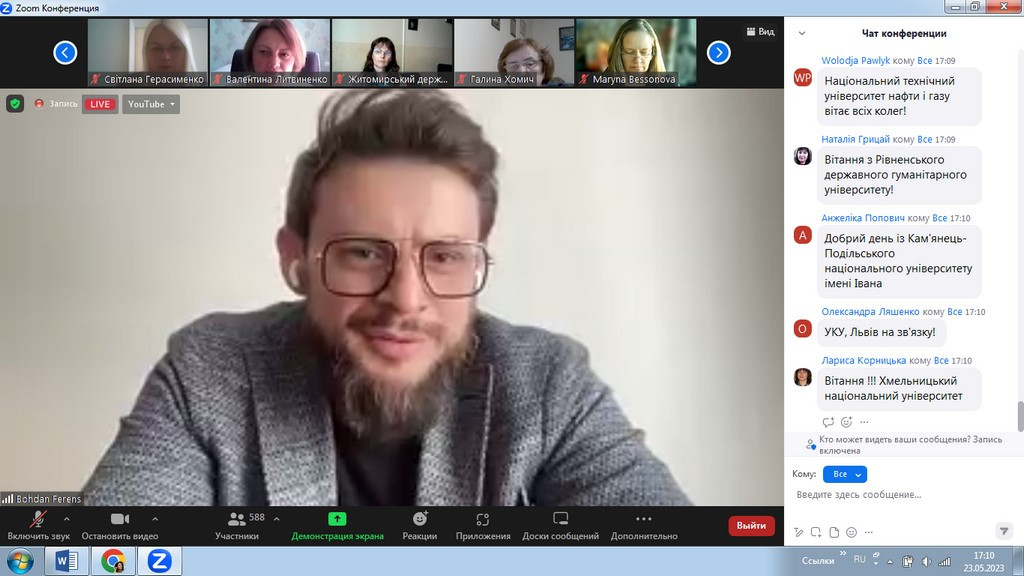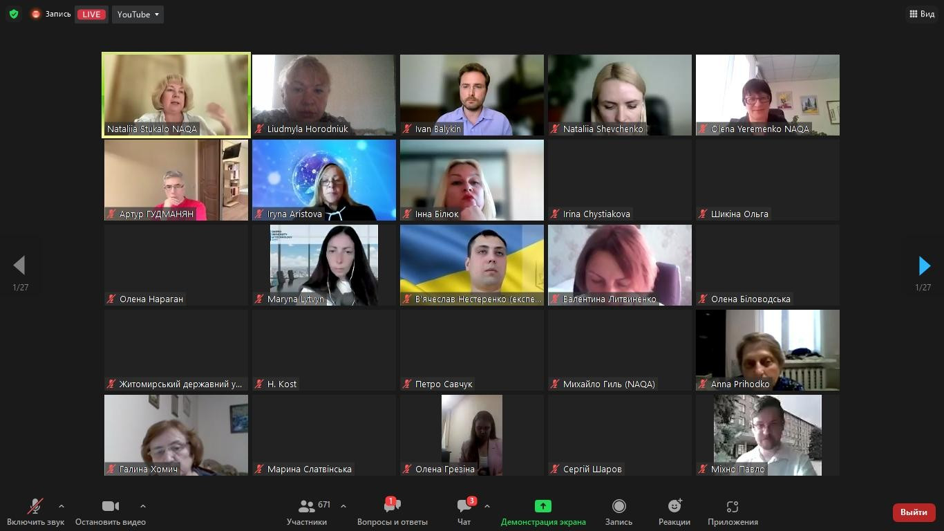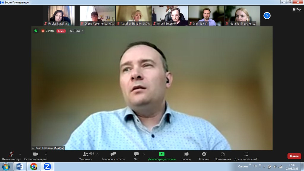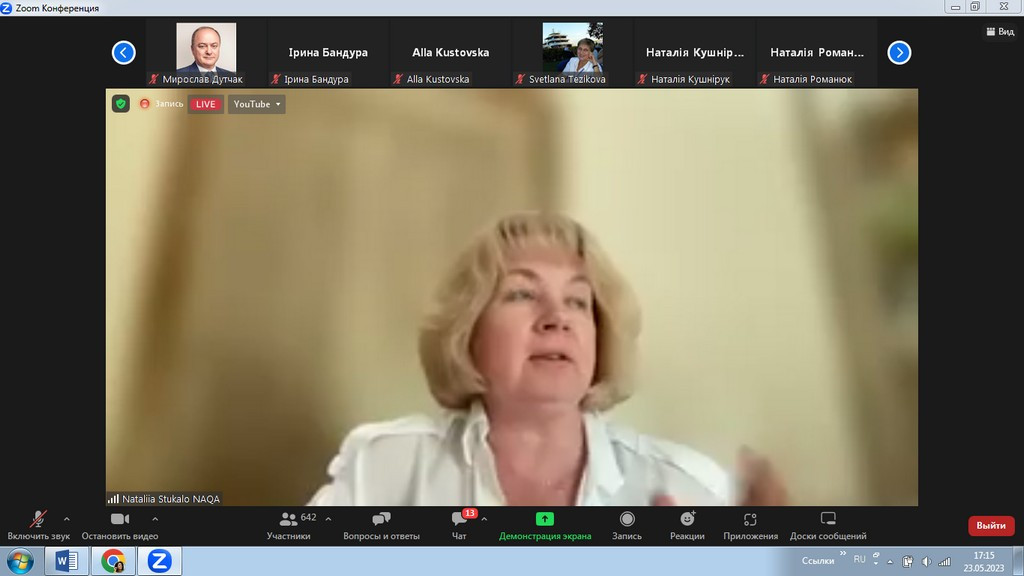 23 травня 2023 року здобувачі третього (освітньо-наукового) рівня вищої освіти ОНП «Філософія» (Інна Фелорова, Людмила Городнюк, Віолета Світлицька, Марина Арапакі, та інші) й гарант ОНП проф. Оксана Петінова взяли участь в онлайн-заході, який організували та провели спікери Нацагенства із забезпечення якості вищої освіти щодо обговорення законопроєкту