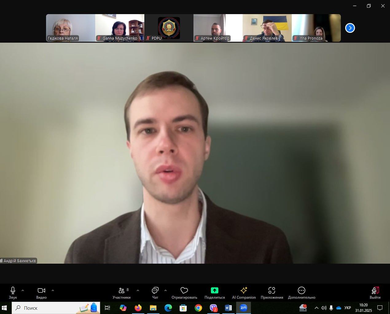 31 січня 2025 року в Університеті Ушинського на платформі Zoom відбувся успішний захист дисертації аспіранта кафедри політичних наук і права Андрія Бахметьєва на здобуття наукового ступеня доктора філософії зі спеціальності 052 Політологія з теми «Виборчі технології в Україні: специфіка застосування та тенденції розвитку». Науковий керівник – доктор політичних наук, доцент, доцент кафедри політичних наук і права Ростецька Світлана Іванівна.