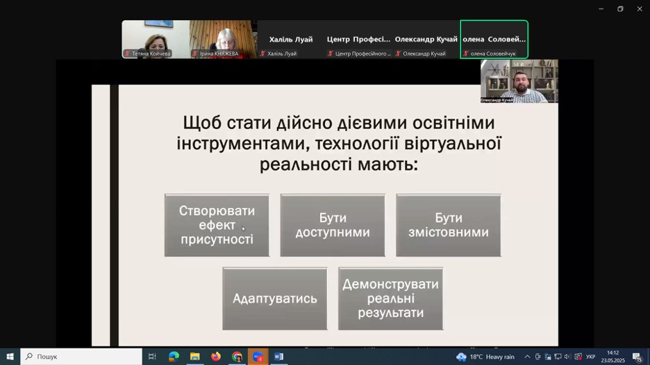 Спікер ознайомив здобувачів вищої освіти, викладачів і науковців із ключовими технологічними трендами у підготовці сучасних фахівців, зокрема з можливостями впровадження технологій віртуальної реальності (VR) в освітнє середовище. У центрі уваги – інноваційні підходи до формування професійних компетентностей, моделювання навчальних ситуацій за допомогою VR-платформ та особливості організації освітнього простору нового покоління.