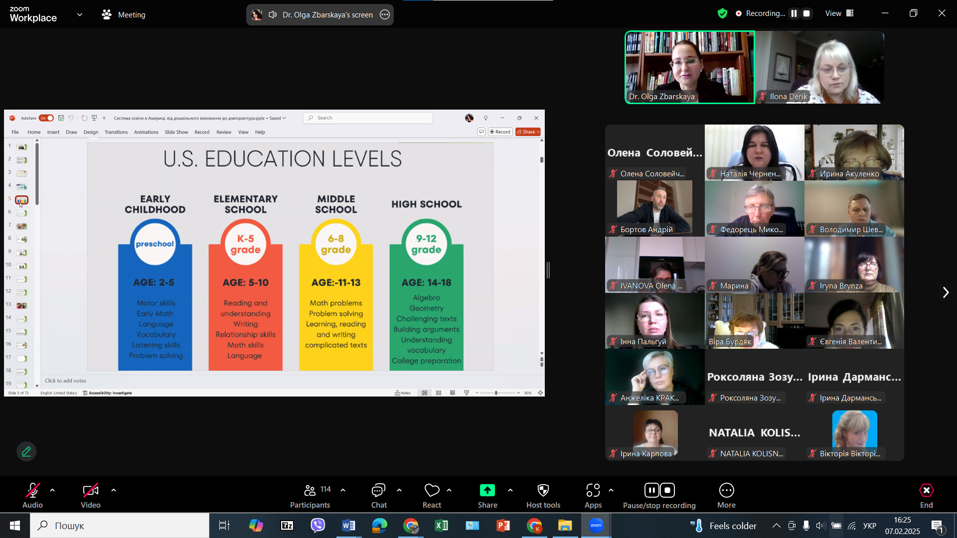 Під час виступу пані Ольга презентувала першу тему підвищення кваліфікації «СИСТЕМА ОСВІТИ В СПОЛУЧЕНИХ ШТАТАХ АМЕРИКИ».