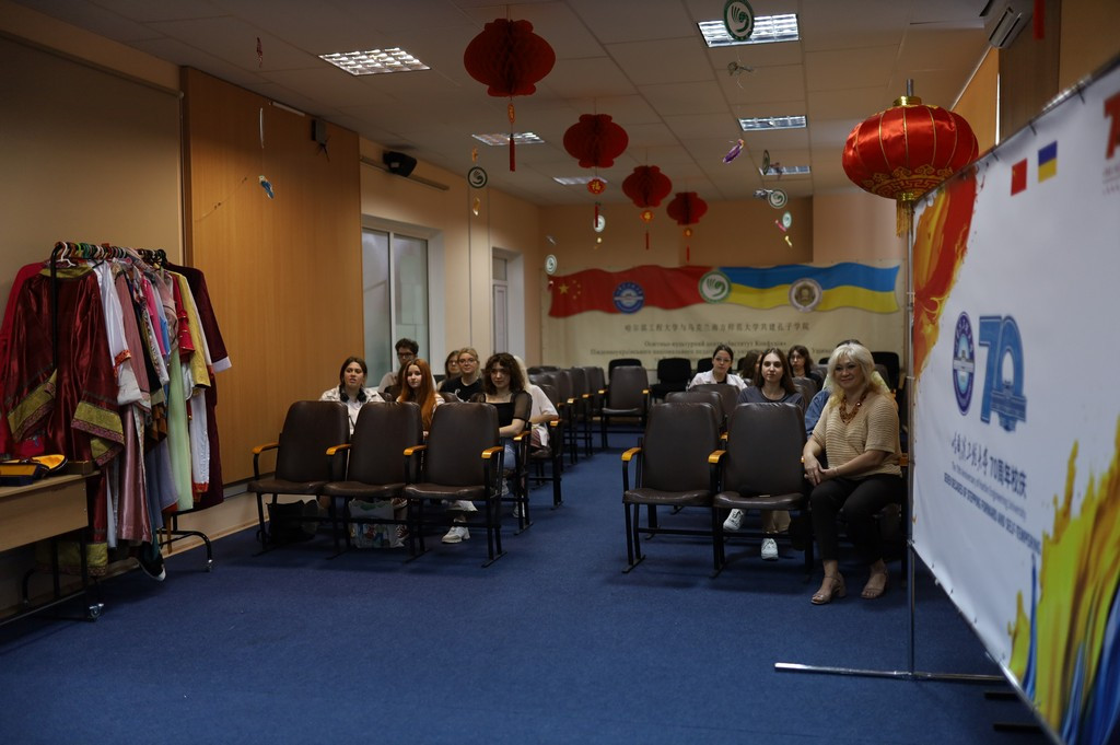 Студенти – майбутні синологи мали можливість подивитися відеофільм про Харбінський інженерний університет та ознайомитися з культурним скарбом Піднебесної, а саме: дізнатися про традиційний костюм ханьців Китаю, який у наші дні вдягають лише під час урочистих церемоній чи в історичних телесеріалах та фільмах; побачити гуцинь – найдавніший щипковий музичний інструмент Китаю, що має яскраво виражений національний колорит; насолодитися класичним танцем та панорамою філії Харбінського інженерного університету на острові Хайнань, що було зроблено з безпілотної камери.
