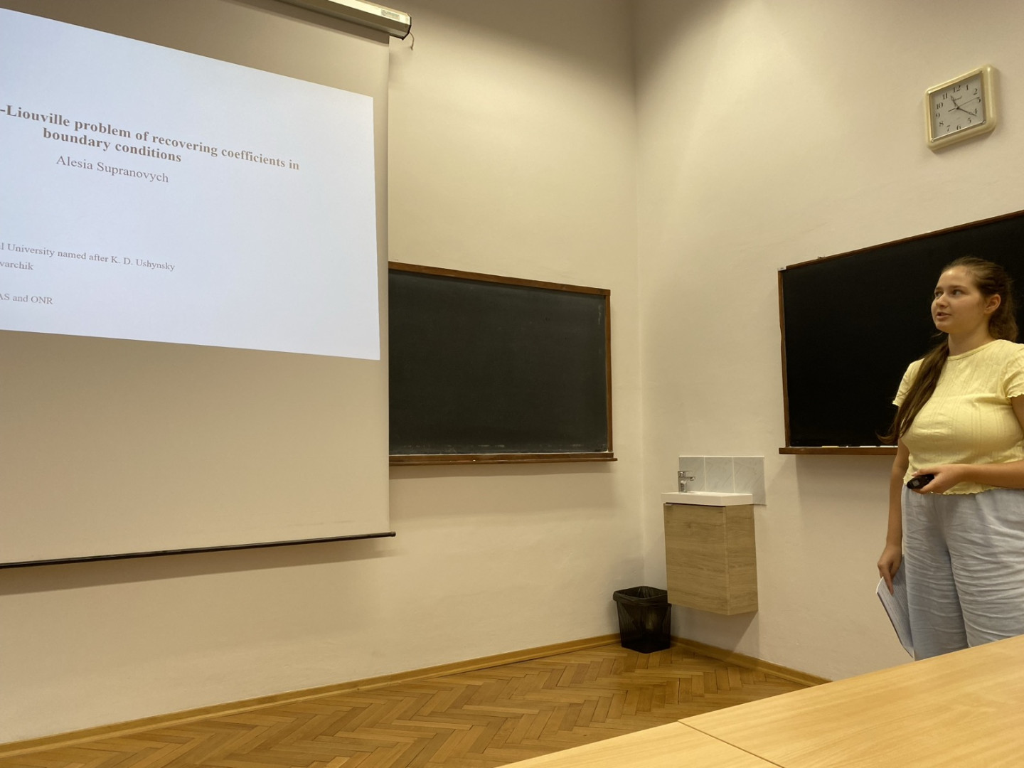 1Професор кафедри вищої математики і статистики Пивоварчик В. М. та здобувачка освіти другого (магістерського) рівня Супранович А. О. виступили з доповідями на семінарі «Operators and Waves, II» (в рамках роботи над сумісним проєктом NSF/NAWA «Impress U») в Інституті математики Польської Академії Наук, Варшава, Польща (9-11 вересня 2025 р.). Доповіді були присвячені розв'язанню різних видів обернених задач Штурма-Ліувілля на метричному графі.