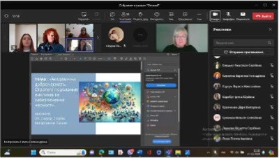 «Дотримання академічної доброчесності. Види порушень академічної доброчесності»; кандидат педагогічних наук, доцент Вероніка Ковиліна з темою: «Види академічної відповідальності».
