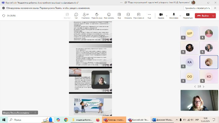 З презентаціями виступили – завідувачка кафедри сімейної та спеціальної педагогіки і психології, кандидат психологічних наук, доцент Олена БАБЧУК та здобувачки першого (бакалаврського) рівня вищої освіти, третього року навчання: Альона ХЛАНЬ, Галина БЕЗПРОЗВАНА, Оксана ШКУРКА.