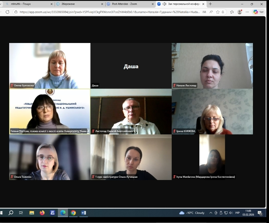 Гарант ОПП, Постоян Т.Г. наголосила, що обговорення та узгодження ключових завдань асистентської практики з роботодавцями є визначальним у контексті присвоєння професійної кваліфікації «Викладач закладу вищої освіти - педагогічний працівник», що відбуватиметься за відповідною процедурою по завершенню професійної підготовки за ОПП «Дошкільна освіта. Управління ЗДО».