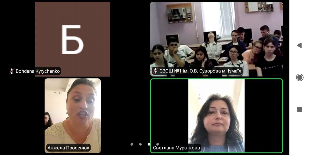 27 травня за сприяння декана факультету дошкільної педагогіки та психології ДЗ «Південноукраїнський національний педагогічний університет імені К.Д. Ушинського», доктора психологічних наук Олени Булгакової та викладачів кафедри теорії і методики дошкільної освіти Ю. Руденко та А. Просенюк було проведено онлайн-зустріч із випускниками спеціалізованої загальноосвітньої школи №1 ім. О. В. Суворова ІІІ ступенів з поглибленим вивченням англійської мови та загальноосвітньої школи № 10 І-ІІІ ступенів міста Ізмаїл.