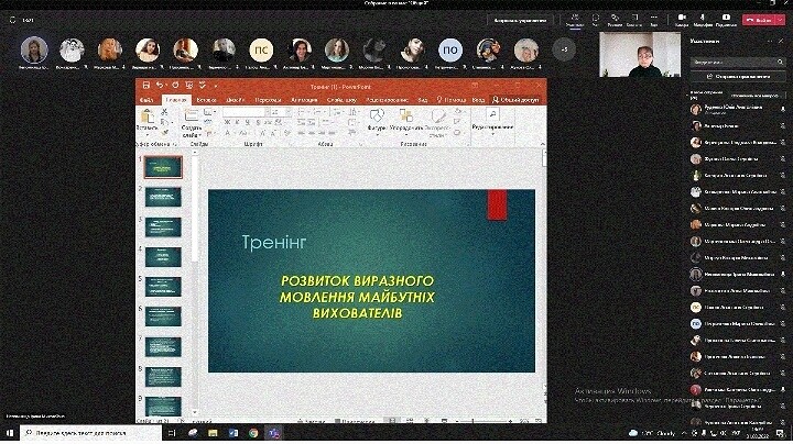 31 березня викладачами кафедри Ю. Руденко та І. Непомнящою був проведений онлайн тренінг «Розвиток виразного мовлення майбутніх вихователів закладів дошкільної освіти». У роботі тренінгу взяли участь здобувачі 3-го та 4-го року навчання спеціальності 012 Дошкільна освіта.