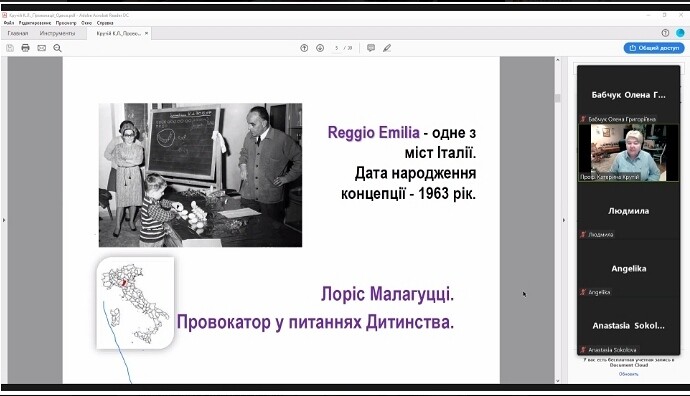 01 квітня на факультеті дошкільної педагогіки та психології Державного закладу «Південноукраїнський національний педагогічний університет імені К. Д. Ушинського», докторкою педагогічних наук, професоркою кафедри дошкільної освіти Вінницького державного педагогічного університету імені Михайла Коцюбинського Катериною Крутій була проведена гостьова лекція для здобувачів спеціальності 012 Дошкільна освіта з теми «Італійський Реджіо-підхід до створення ситуацій провокацій для дітей дошкільного віку».