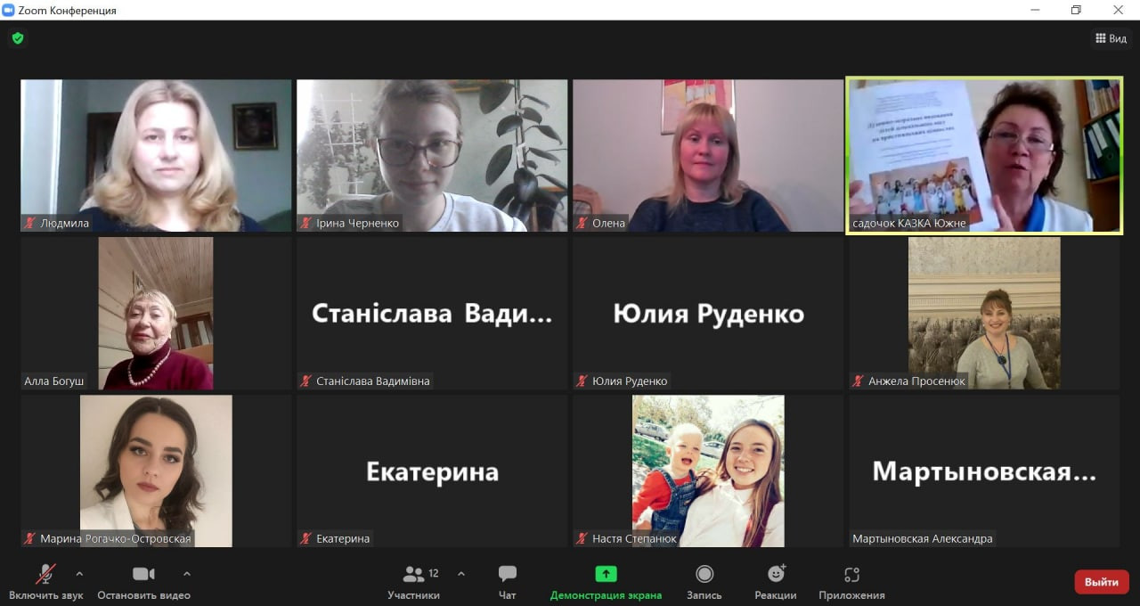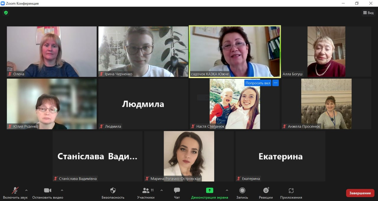 На онлайн-зустрічі були присутні стейкхолдери, а саме, Сучок Віра Євгенівна – директорка дитячого садка – Комунальний заклад дошкільної освіти (ясла – садок) №4 «Казка» Южненської міської ради Одеського району Одеської області та Ласькова Антоніна Андріївна – директорка Одеського дошкільного навчального закладу «Ясла-садок» № 250 Одеської міської ради Одеської області.