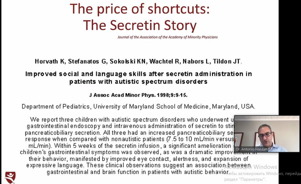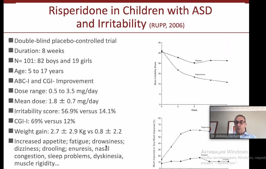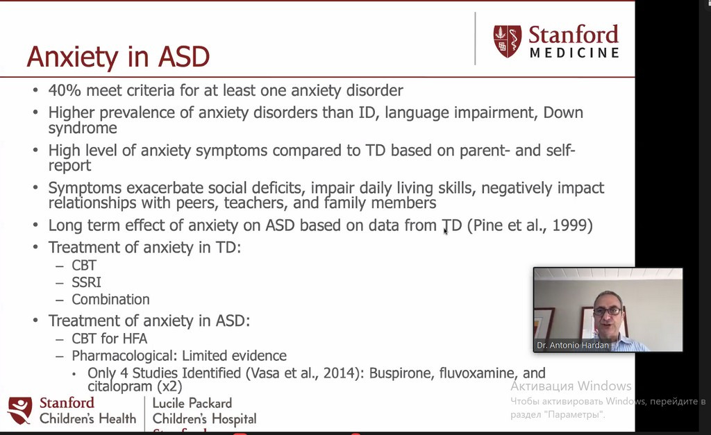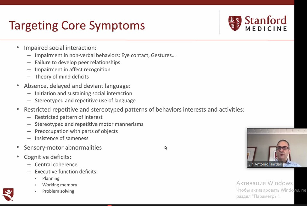 Тема другого вебінару «Психофармакологія при аутизмі». Лекція відбувалась за наступною програмою «Психофармакологічне лікування розладів аутистичного спектру, оновлення клінічних та наукових досліджень». Спікер вебінару Antonio Hardan.