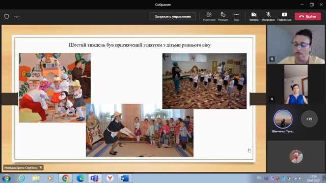 20.06. 2022 р. відбулося онлайн-засідання захисту виробничої практики в групах раннього віку здобувачами першого року навчання денної форми спеціальності 012 Дошкільна освіта. Метою виробничої (педагогічної) практики було сформувати у здобувачів освітнього процесу уміння планувати й організовувати роботу з дітьми раннього віку у закладі дошкільної освіти, сприяти активному включенню у вирішенні освітньо-виховних завдань.