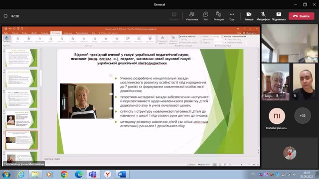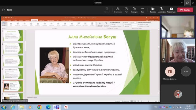 29 вересня відбулося лекційне заняття з навчальної дисципліни «Становлення та розвиток української дошкільної лінгводидактики» для здобувачів другого (магістерського) рівня вищої освіти проведене кандидатом педагогічних наук, доцентом кафедри теорії та методики дошкільної освіти Іриною Непомнящою та професором кафедри, доктором педагогічних наук, дійсним членом НАПНУ Аллою Богуш.