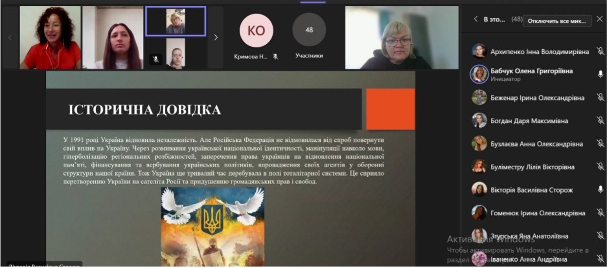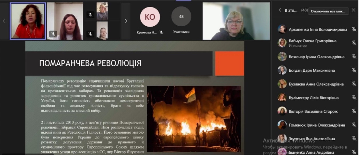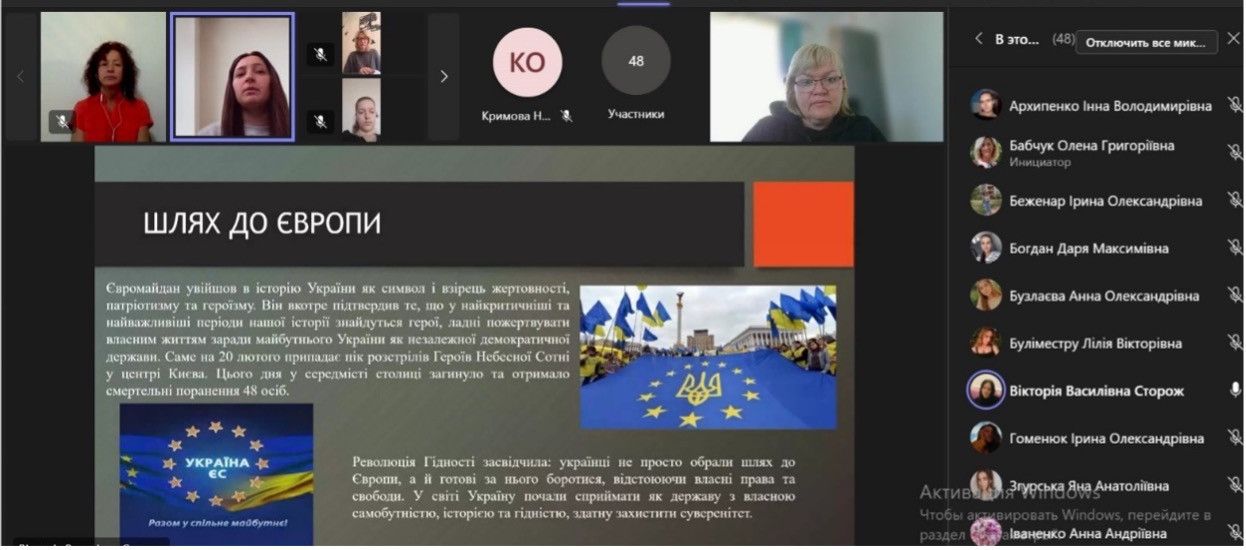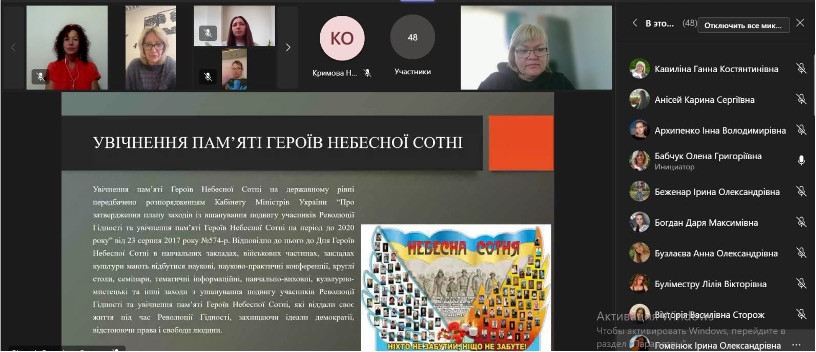 Завідувачка кафедри Олена Григоріївна Бабчук, доценти кафедри Вікторія Василівна Сторож, Вероніка Геннадіївна Ковиліна та здобувачка Маргарита Ігорівна Левицька підготували презентацію присвячену пам’яті та вшануванню Героїв Небесної Сотні.