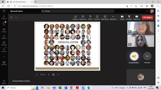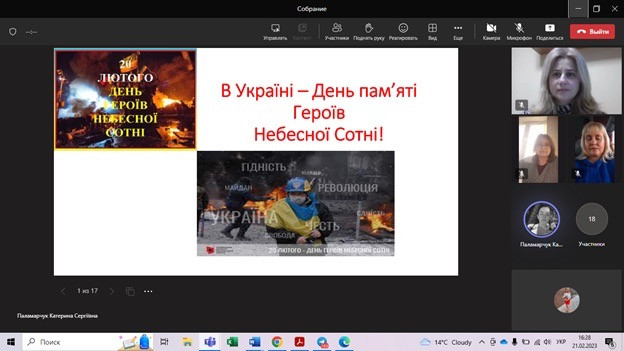 Студенти наукового гуртка «Психолого-педагогічний супровід організації художньо-мовленнєвої діяльності дітей дошкільного віку» (керівник, к.п.н., доц. Ірина Попова) активно долучилася до проведення виховного заходу приуроченому Дню пам’яті Героїв Небесної Сотні. Студенти-гуртківці презентували підготовлені матеріали відзначаючи, що наша міцність і сила духу базується на міцності й силі багатьох українців, які не здавалися, а діяли заради того, щоб Україна була самостійна, вільна, європейська і демократична, незалежна і цілісна.